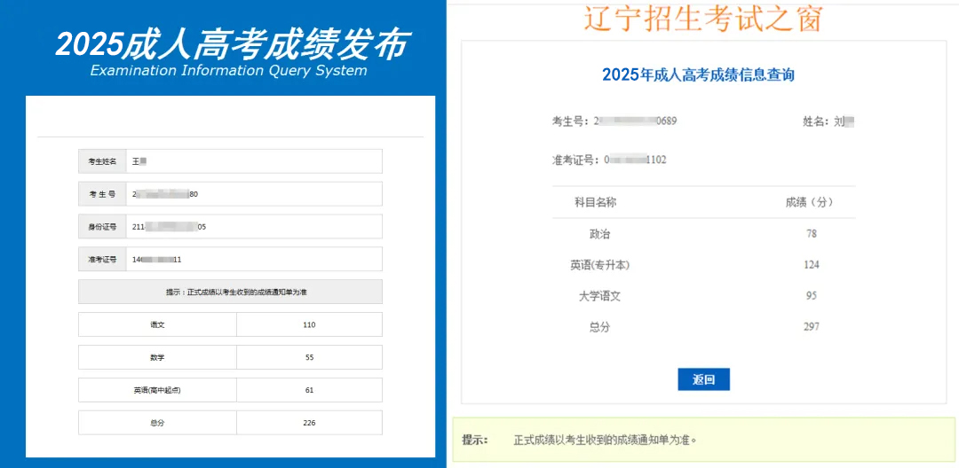 成人高考2025年辽宁省专本科成绩查询时间:11月12日,并公布最低录取控制分数线。
