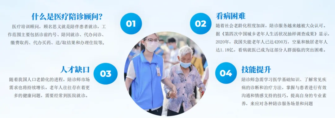 1)市场缺口大,中国步入老龄化社会,健康行业人才缺口大。北京、上海等城市陪诊师缺口均在12万人以上。
